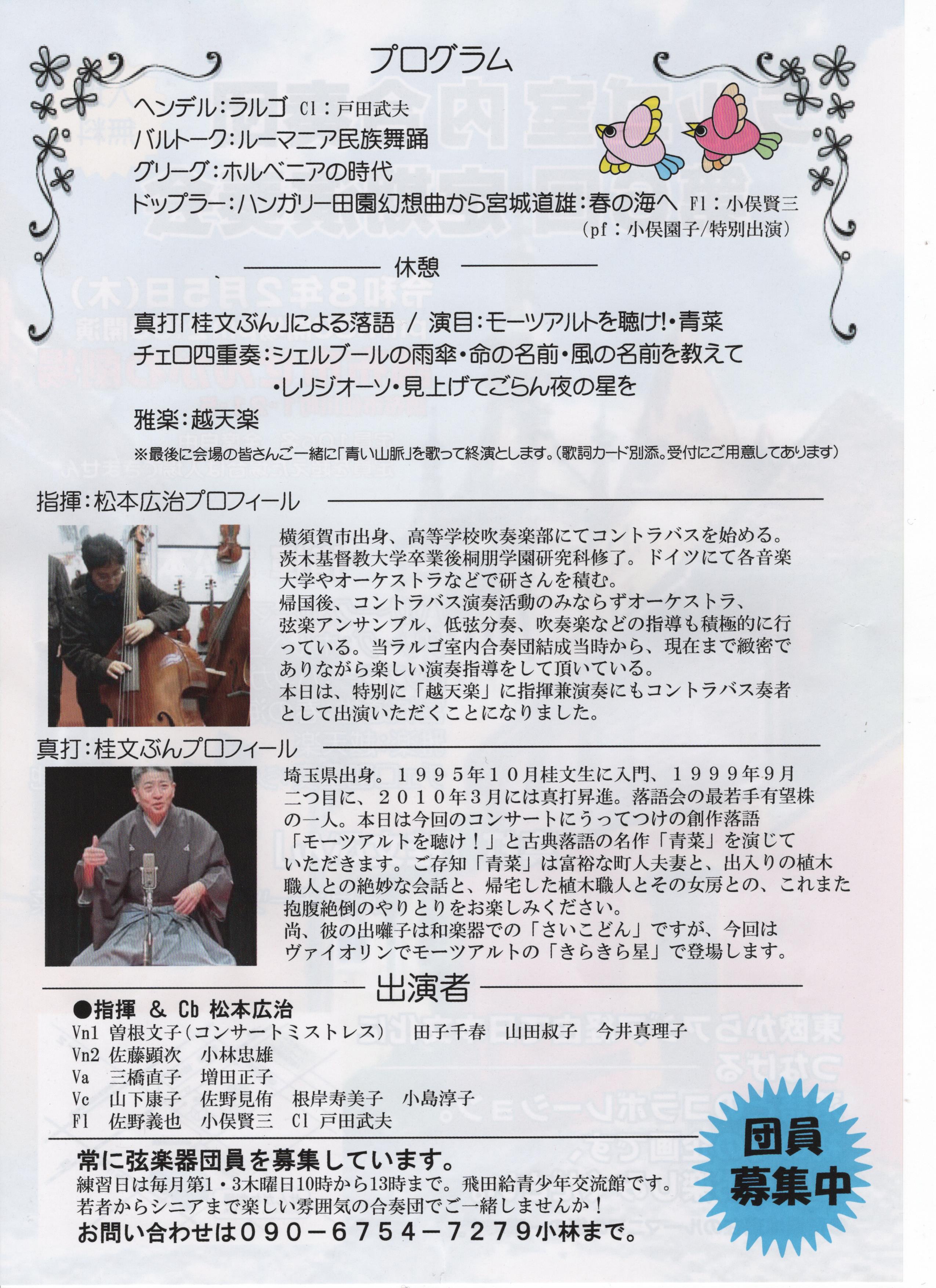 米寿間近の演奏会に真打落語をプログラムに組み入れて「米寿サロン」をと水面下で企画進行中です♪若い指揮者交えて構成を考えています。落語愛好家が多い昨今、室内楽と落語を如何にコラボ出来るか楽しみです♪詳細決まり次第正式に公開しようと思います♪お楽しみに!